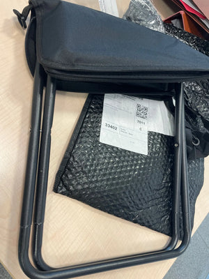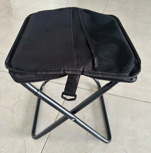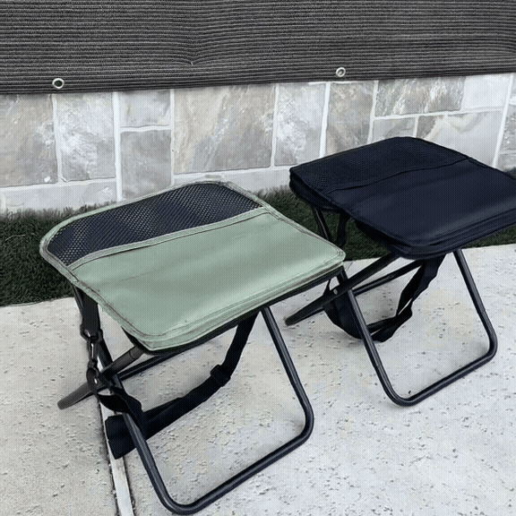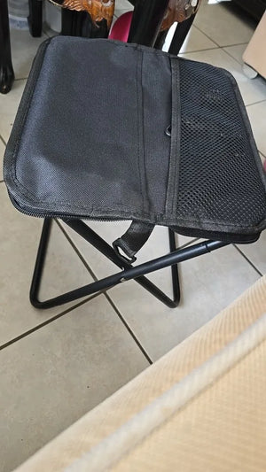 Dieser tragbare Hocker bietet bequemen Sitzkomfort und einfache Transportmöglichkeit für unterwegs.